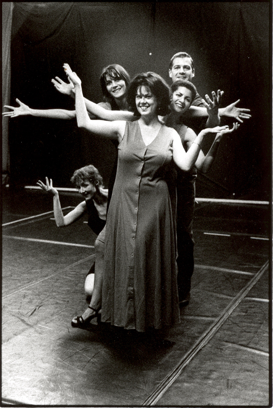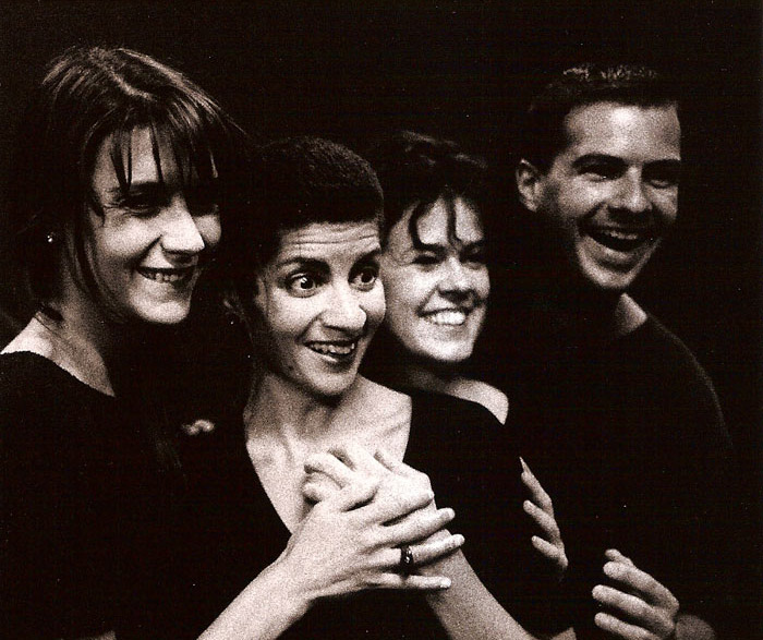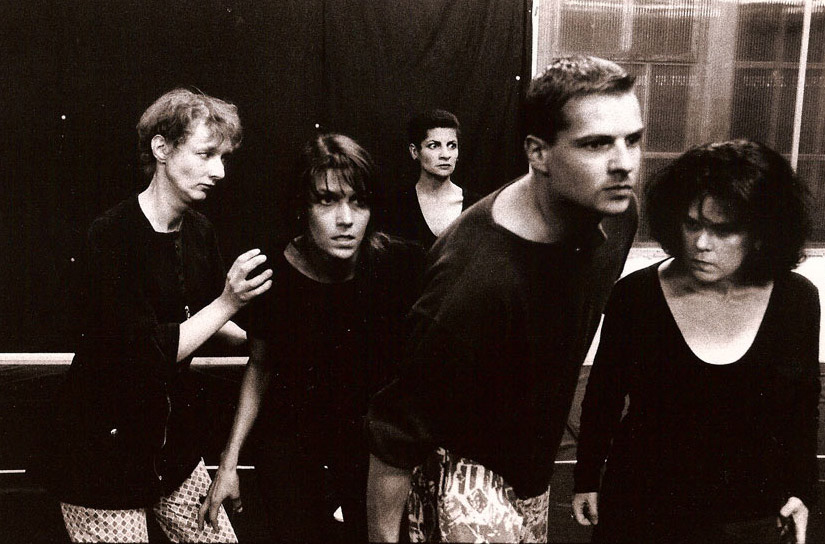 Pour ce travail d'atelier basé sur deux ans, nous avons voulu repousser les limites de "l'acteur". Ainsi avons-nous banni de notre vocabulaire certains termes comme "faire son entrée", "avoir le premier rôle", "jouer le texte", "se tourner face public", etc…le but étant d'être" tout simplement. Sur un canevas prévu et travaillé, presque toutes les scènes sont jouées en improvisation collective.