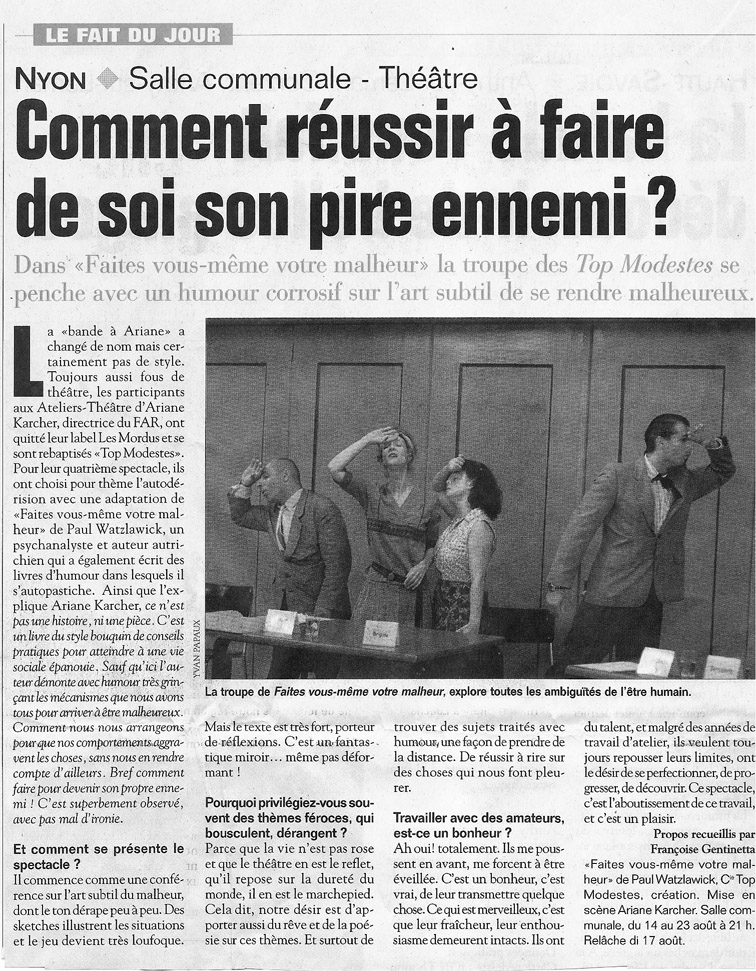 On peut toujours reprocher son manque d'amour à un partenaire ou attribuer les pires intentions à son patron, mais comment faire de soi-même son pire ennemi? Eh bien, ça s'apprend!